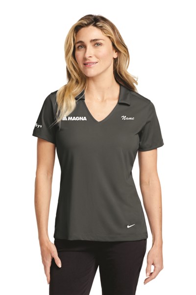Designed for the ultimate in performance, this polo has a soft drape and a vertical mesh texture. Dri-FIT moisture management technology provides breathable comfort during and after play. 4.4-ounce, 100% polyester Dri-FIT fabric Tailored for a feminine fit Johnny collar Contrast embroidered Swoosh logo on left hem