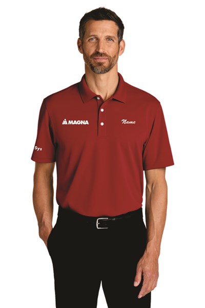 Featuring a pleasing mini grid texture, this high-performance polo is an ideal choice for a polished, professional look all day long. 4.6-ounce, 100% polyester jacquard Stain-release Snag-resistant Moisture-wicking Odor-fighting UPF rating of 50+ Flat knit collar 3-button placket Faux pearl buttons Side vents Straight hem Tag-free label